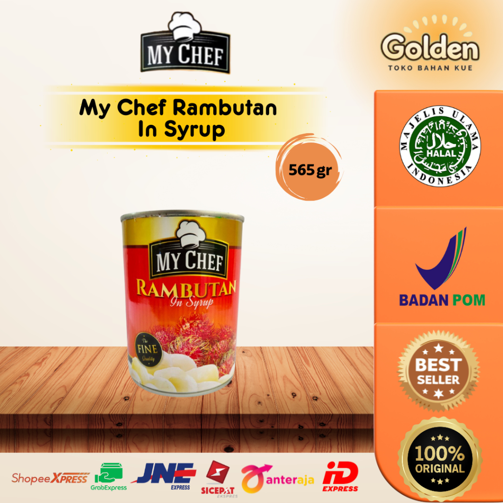 My Chef Rambutan in Syrup adalah buah rambutan matang yang sudah dikupas dan dikemas dalam sirup gula kaleng. Buah ini siap santap langsung—praktis untuk camilan atau pelengkap hidangan, dengan rasa manis dan tekstur kenyal khas rambutan.