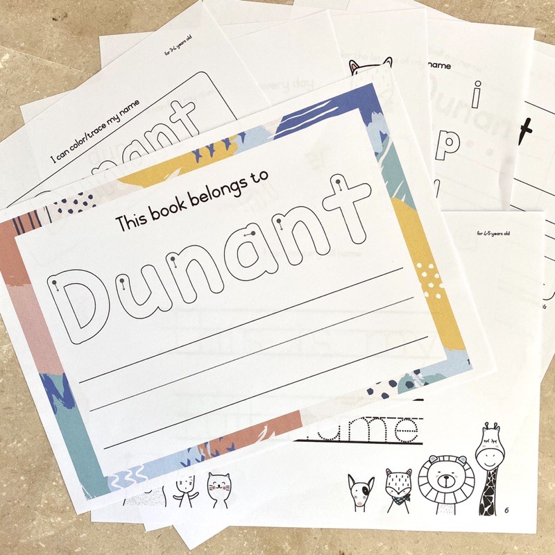 terdapat 15 halaman untuk anak belajar mengenal dan menulis namanya dan 1 halaman untuk parent’s guide.