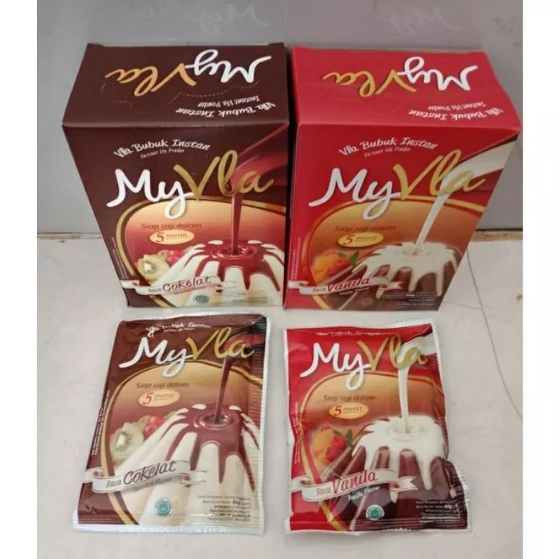 My vla bubuk instant siap saji dalam 5 menit rasa vanila pack 60g. Komposisi : gula, krimer nabati (mengandung pewarna makanan beta karoten CI 75130), susu bubuk, penstabil nabati, perisa vanila, pewarna makanan tartrazin CI 19140.