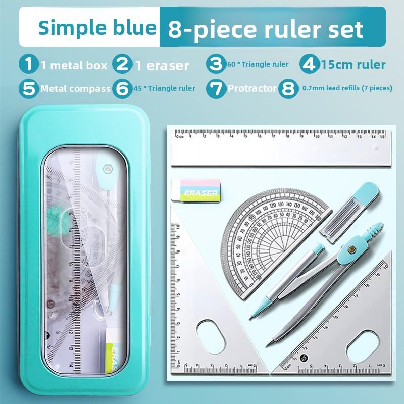 Myopia-Prevent 8-Piece Measuring Set Compass Ruler for Accurate Angle Measure Student Homework Drawing Office Design Stationery