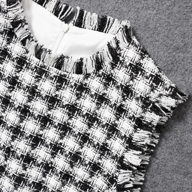 N черно-белое клетчатое твидовое платье для девочек, новое весенне-летнее осеннее маленькое элегантное офисное приталенное цельное платье ...