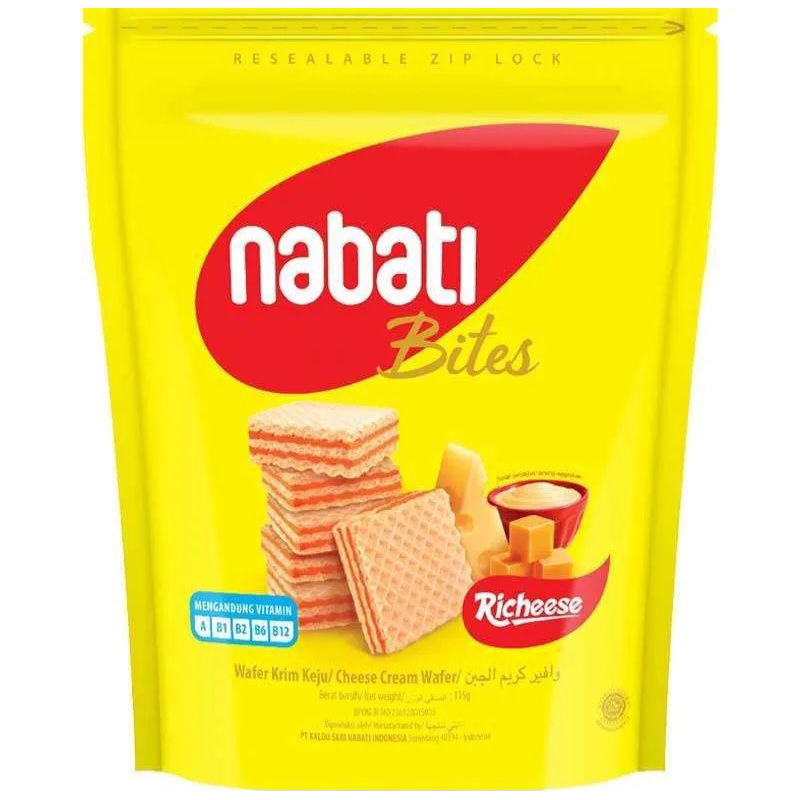 Kombinasi sempurna antara renyahnya wafer dan krim keju Richeese signature flavor Nabati yang berlimpah. Dibuat dengan bahan-bahan berkualitas tinggi, Nabati Richeese Wafer diperkaya dengan vitamin A, B1, B2, B6, dan B12. Setiap gigitan membuat kamu lebih bersemangat!