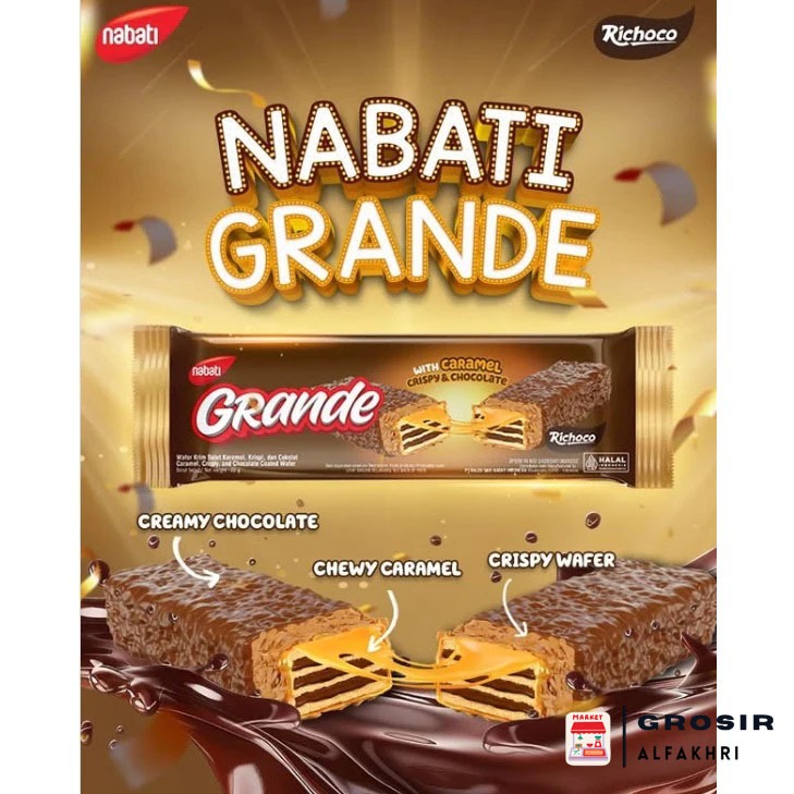 Nabati Grande with Caramel Crispy & Chocolate Richoco wafer krim salut karamel, krispi dan cokelat 22gr