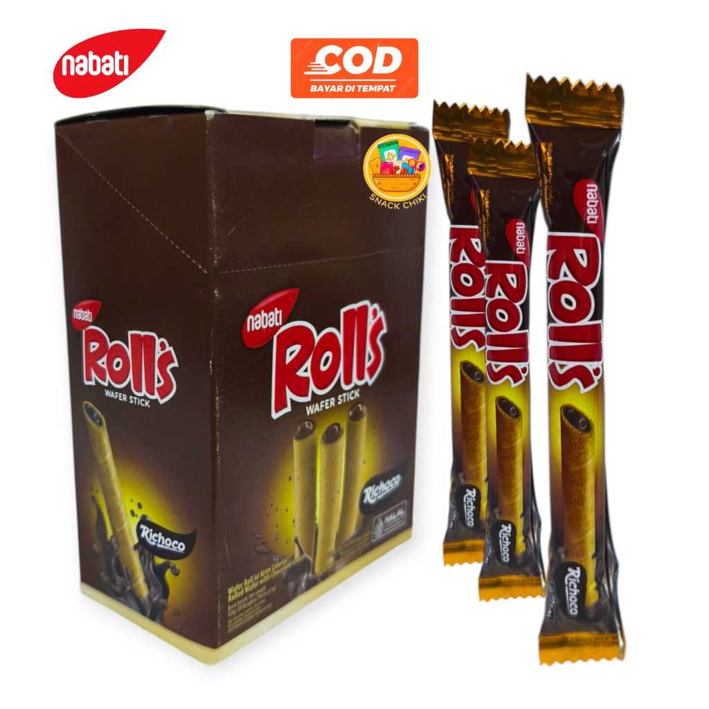 NABATI ROLLS WAFER STICK RASA COKLAT 1 BOX 20 PCS