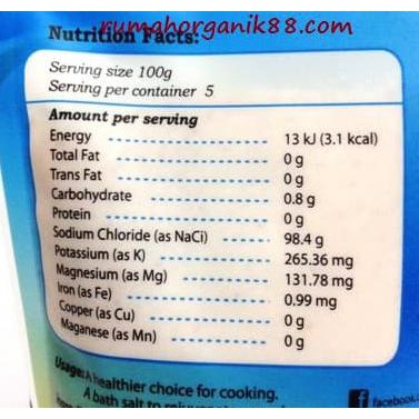 Garam dari pegunungan Himalaya, tanpa bahan tambahan, tanpa bahan anti caking (anti penggumpalan). Mengandung mineral alami.