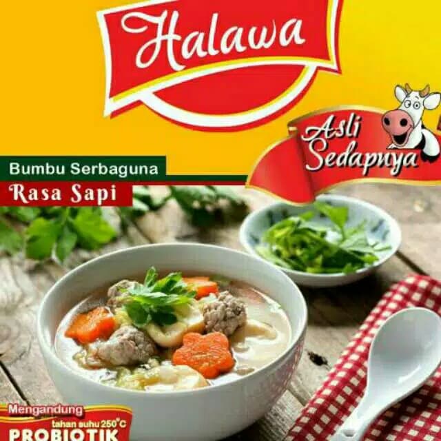 Halawa, bumbu masak dari produsen muslim, Halal dan Thoyib dengan izin produksi Halal MUI, HALAWA BUMBU SERBAGUNA, HALAWA PELOPOR BUMBU MASAK PROBIOTIK