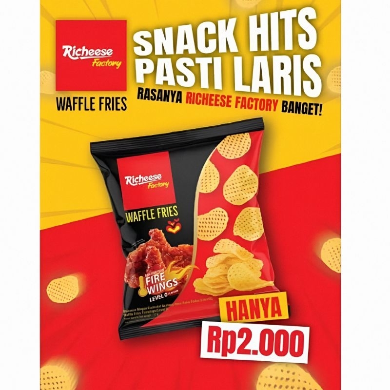 Snack terbaru dari Richeese, makanan ringan ekstrudat kentang dengan varian pilihan rasa burger keju / ayam pedas. Diproduksi oleh PT. Kaldu Sari Nabati Indonesia. Tersertifikasi BPOM dan halal.