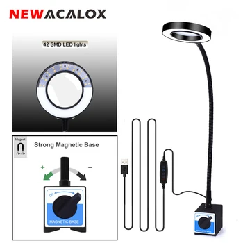 NEWACALOX Adjustable Magnetic Base 3X/5X Illuminated Magnifier USB LED Magnifying Glass Third Hand Tool Loupe for Soldering