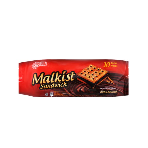 Nissin malkist sandwich rich chocolate 10 x 24 gram merupakan biskuit berlapis coklat, membuat biskuit ini sangat terasa nikmat saat disantap. Coklatnya yang khas membuat mulut kita ingin terus menggigitnya tiada henti. Diproses secara higienis dan dibuat oleh pabrikan ternama PT. Nissin Biscuit Indonesia tentunya menambah nilai jual yang tak ternilai buat anda. Cobalah, dan rasakan kenikmatan dan kelezatan Nissin malkist sandwich rich chocolate ini.