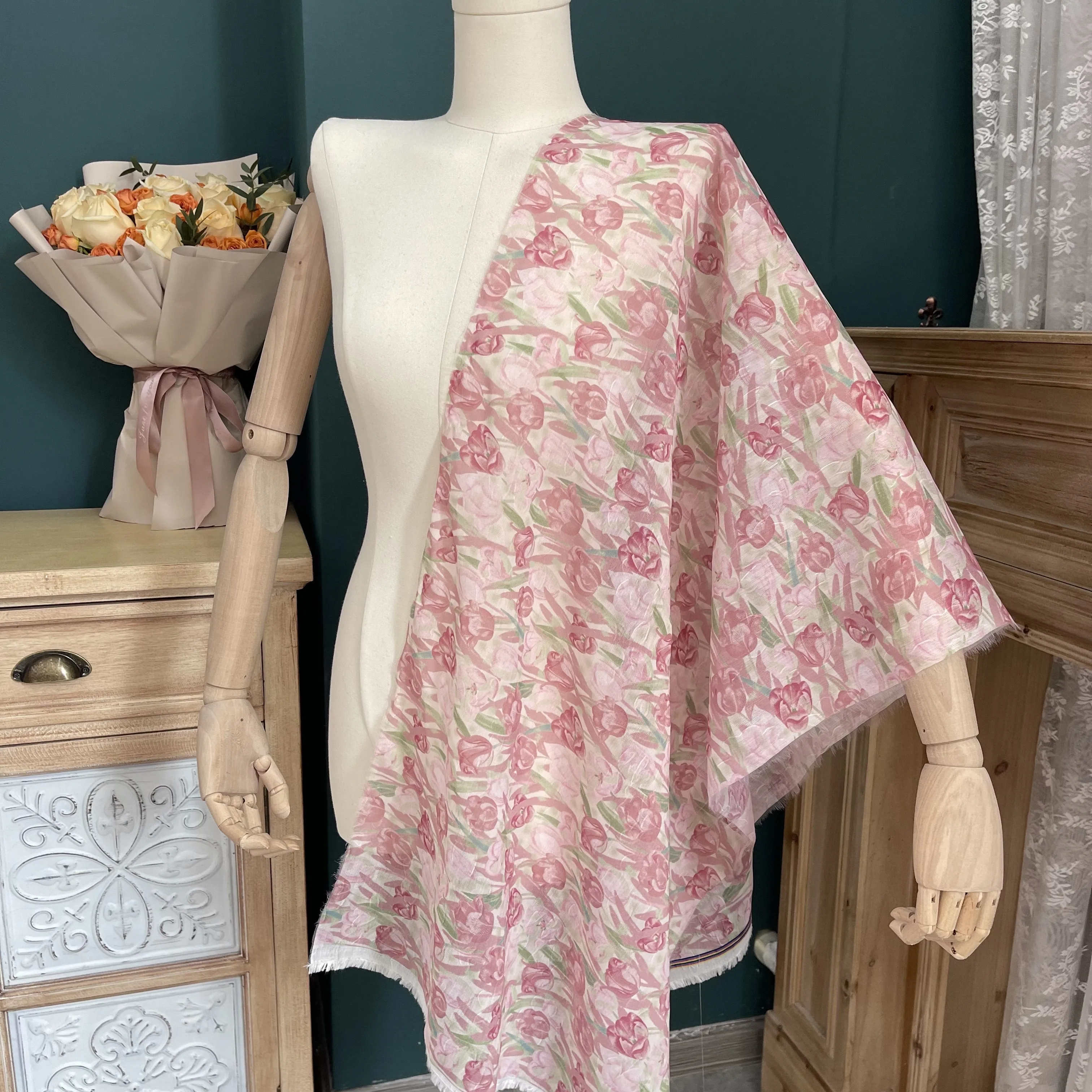 NO42 2023 Новое поступление полупрозрачная розовая роза принт жаккард теншелк конопляная ткань женское летнее платье одежда для шитья