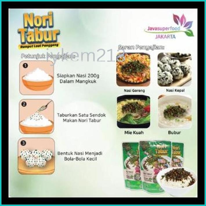 Nori Tabur Java Super Food adalah Nori Tabur yang terbuat dari bahan - bahan yang berkualitas serta memiliki rasa yang enak dan lezat.