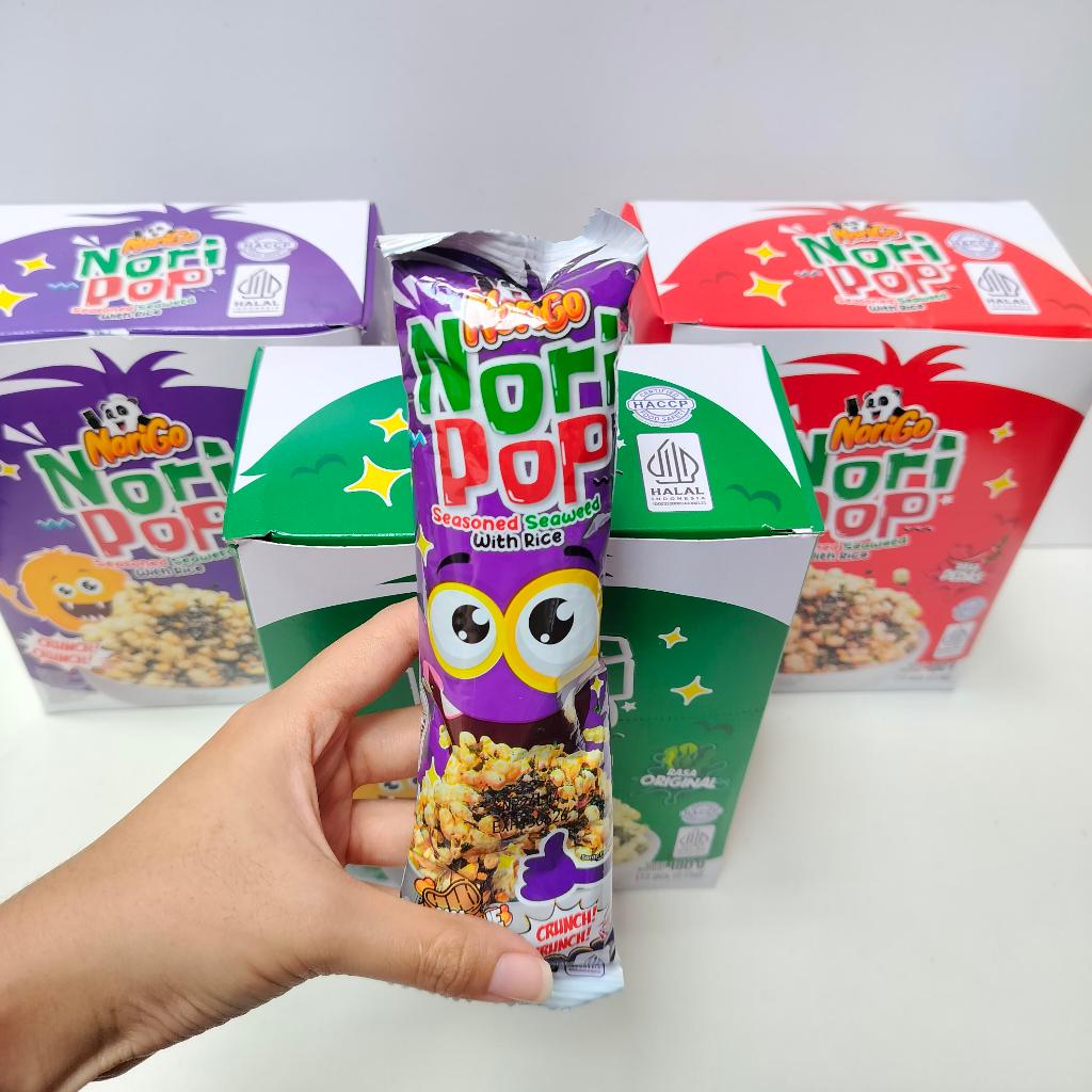 Nori Pop yaitu nori tabur yang merupakan potongan rumput laut panggang berbagai rasa dengan taburan nasi yang crispy. Nori pop praktis kamu nikmati dimanapun dan kapanpun sebagai taburan untuk makanan atau snack favorite.