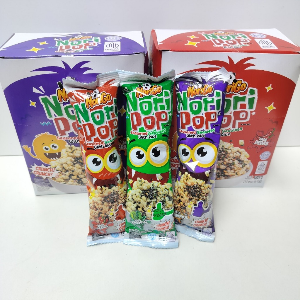 Nori Pop yaitu nori tabur yang merupakan potongan rumput laut panggang berbagai rasa dengan taburan nasi yang crispy. Nori pop praktis kamu nikmati dimanapun dan kapanpun sebagai taburan untuk makanan atau snack favorite.