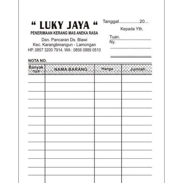 >> KERTAS : NCR 2 ply (tembus tanpa karbon dangan Kualitas Baik)