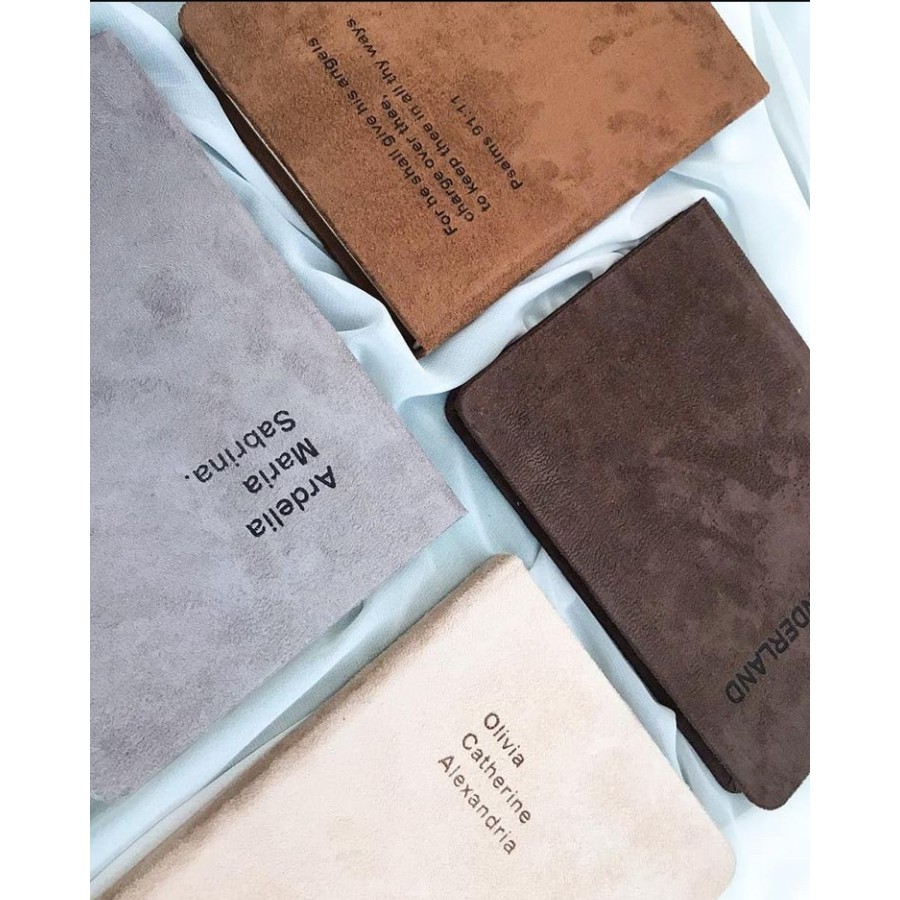 - Cover : karton tebal dilapisi bahan suede.