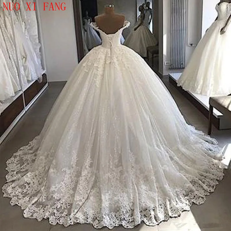 NUOXIFANG, элегантное белое свадебное платье с открытыми плечами, бальные платья, кружевная Нижняя аппликация, Формальное длинное пышное платье...