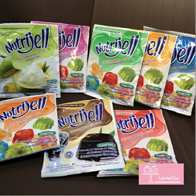 nutrijell adalah jelly serbuk yang mengandung rumput laut dan konnyaku. Mengandung vitamin D, kalsium, dan fiber.