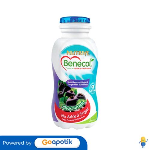 Deskripsi : Merupakan produk siap minum dengan rasa buah blackcurrant yang dapat membantu mencegah kolesterol dan menurunkan kadar kolesterol | Komposisi : - | Dosis : - | Indikasi : NA | Perhatian Khusus : NA | Kemasan : Botol, 100 ml | NIE : MD 266610015281