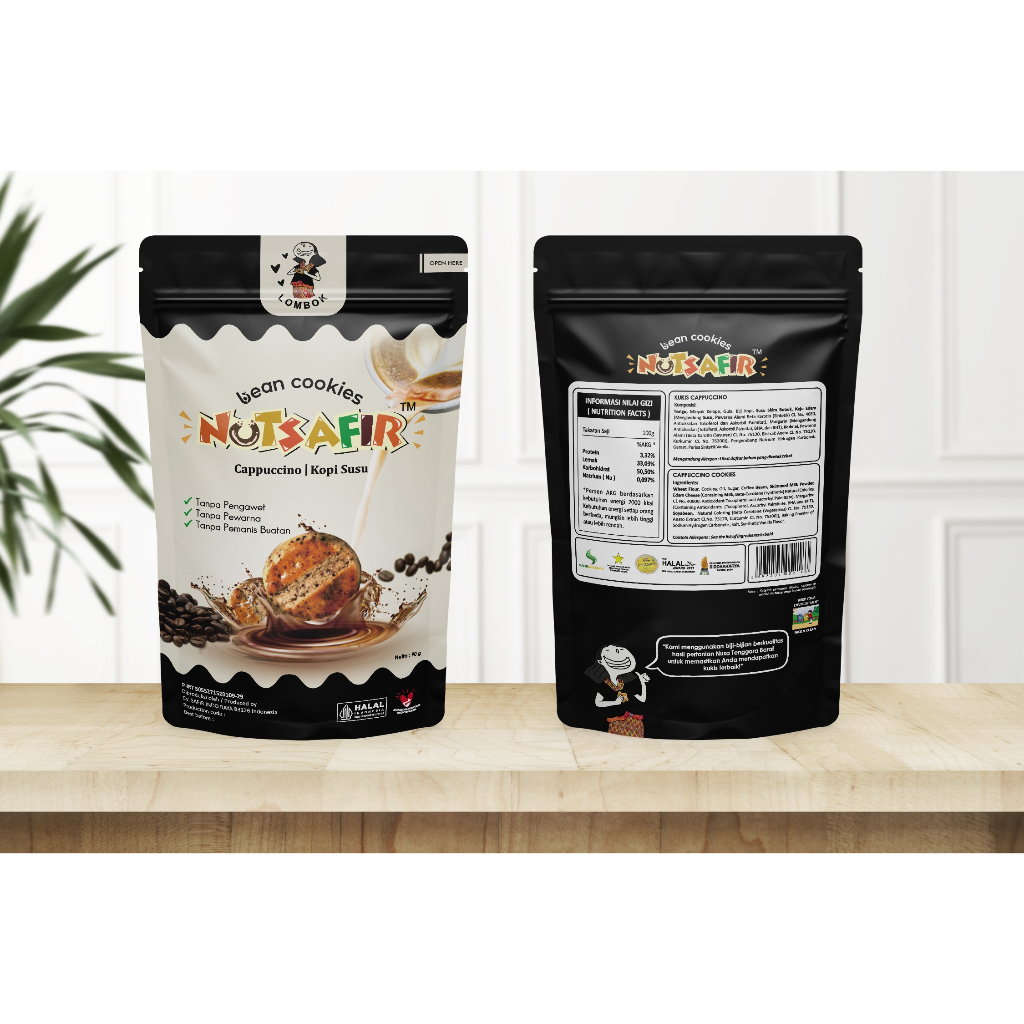 NUTSAFIR COOKIES CHAPPUCCINO POUCH berbahan dasar kopi berkualitas tinggi.