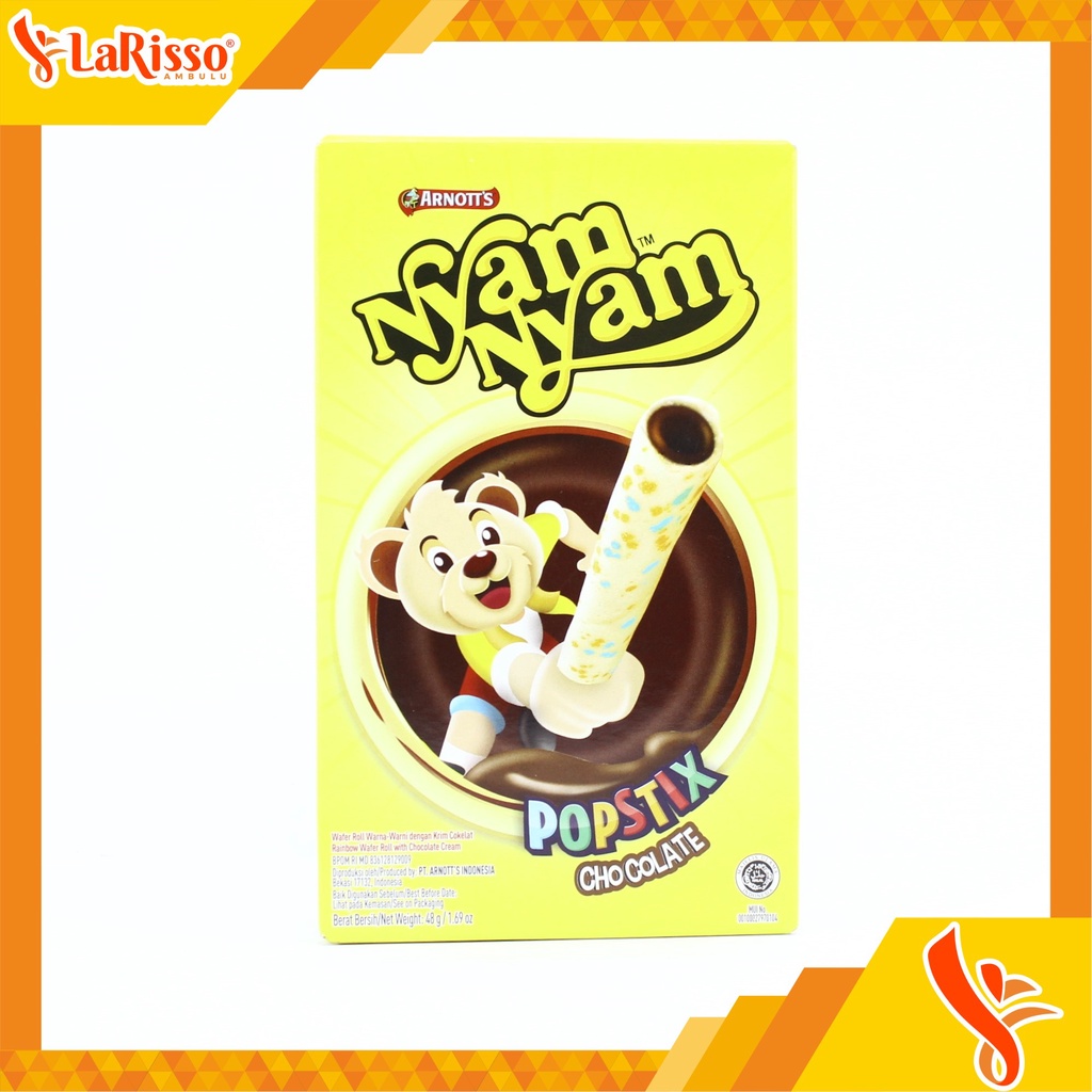 NYAM NYAM popstix adalah cemilan kekinian dengan varian chocolate didalam wafer roll yang renyah,cocok dimakan saat sedang bersantai dengan anak-anak ,dan dengan kemasan yang mudah untuk dibawa kemana-mana.