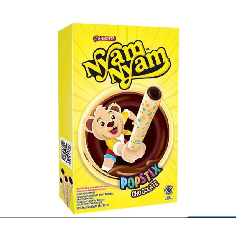 Nyam-nyam popstix merupakan snack dengan krim coklat yang lezat.