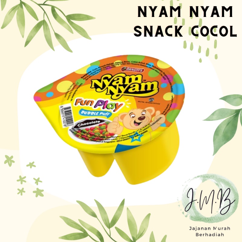 Nyam Nyam Bubble Puff Rasa Cokelat adalah cemilan bola bola renyah dengan krim rasa coklat yang enak.