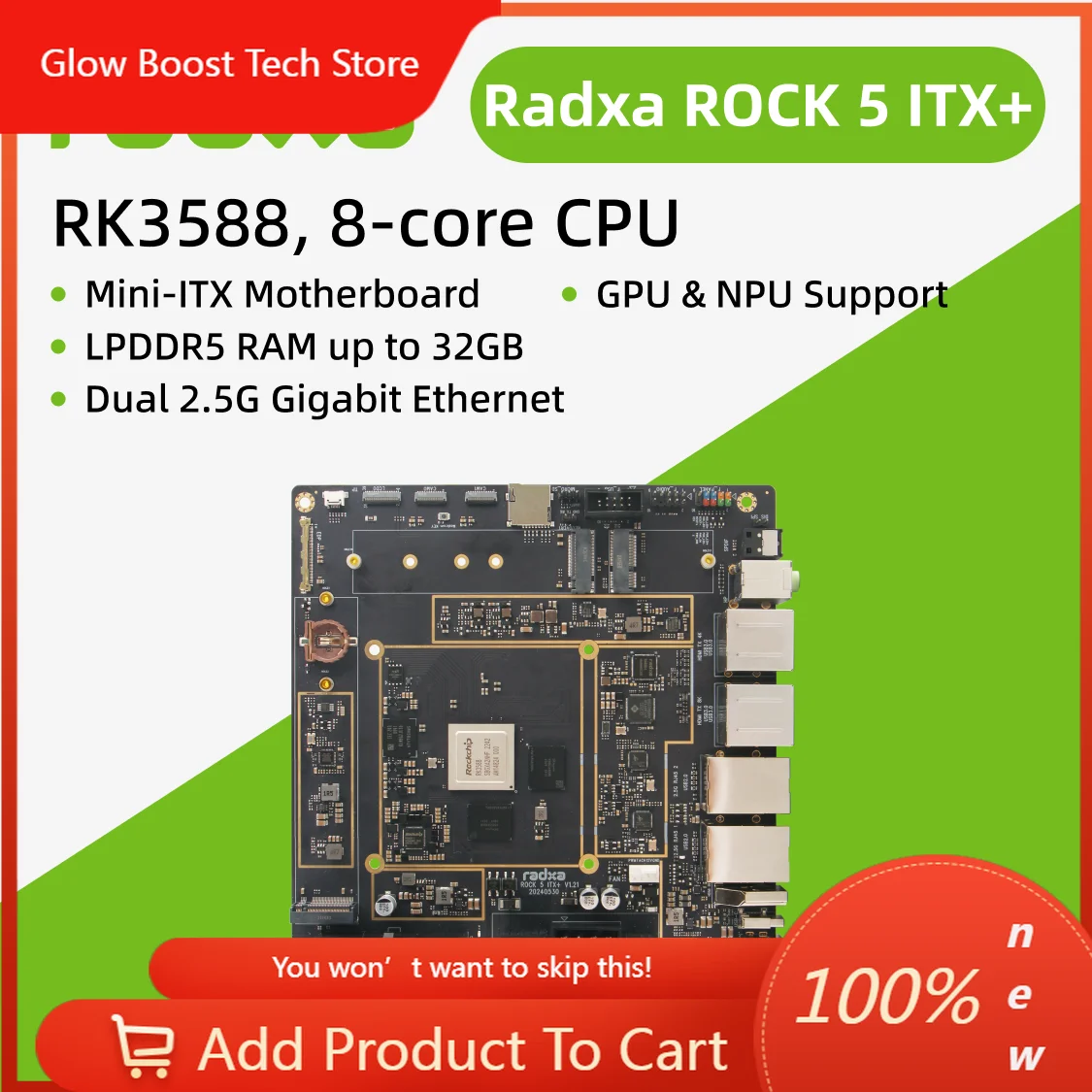 NYRadxa ROCK 5 ITX+, RK3588 8-core CPU, Mini-ITX Motherboard, LPDDR5 RAM, 8K HDMI and Dual M.2 M Key Connector
