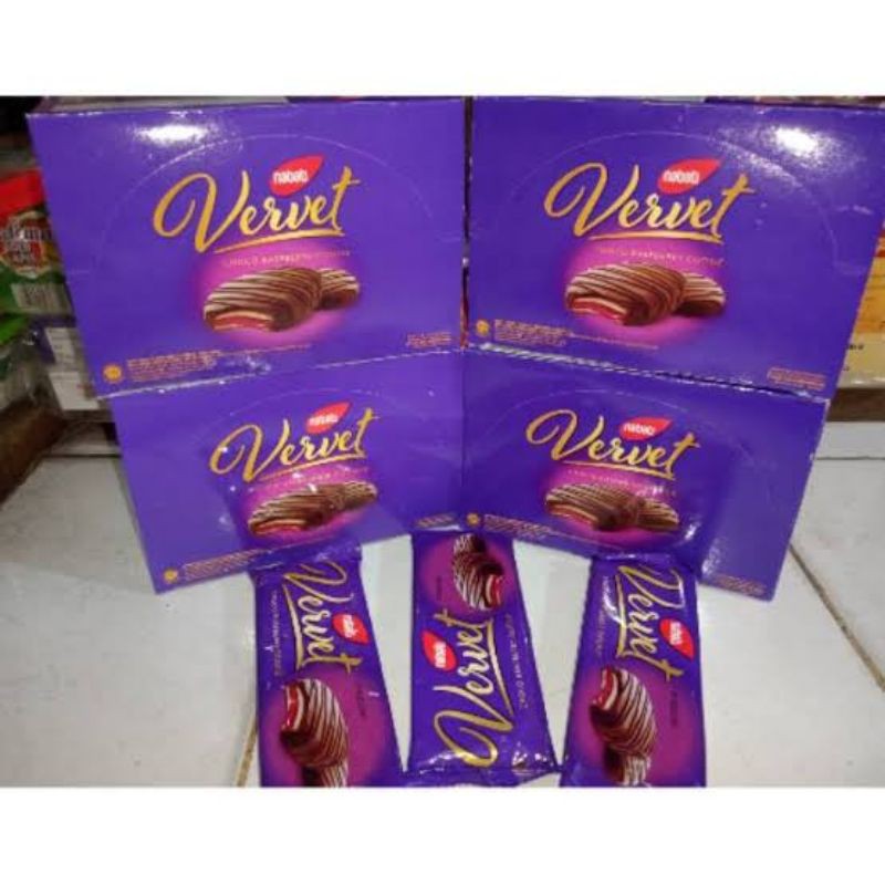 Nabati Vervet Choco Raspberry cookies, kemasan box isi 10 sachet @ 38 gram.