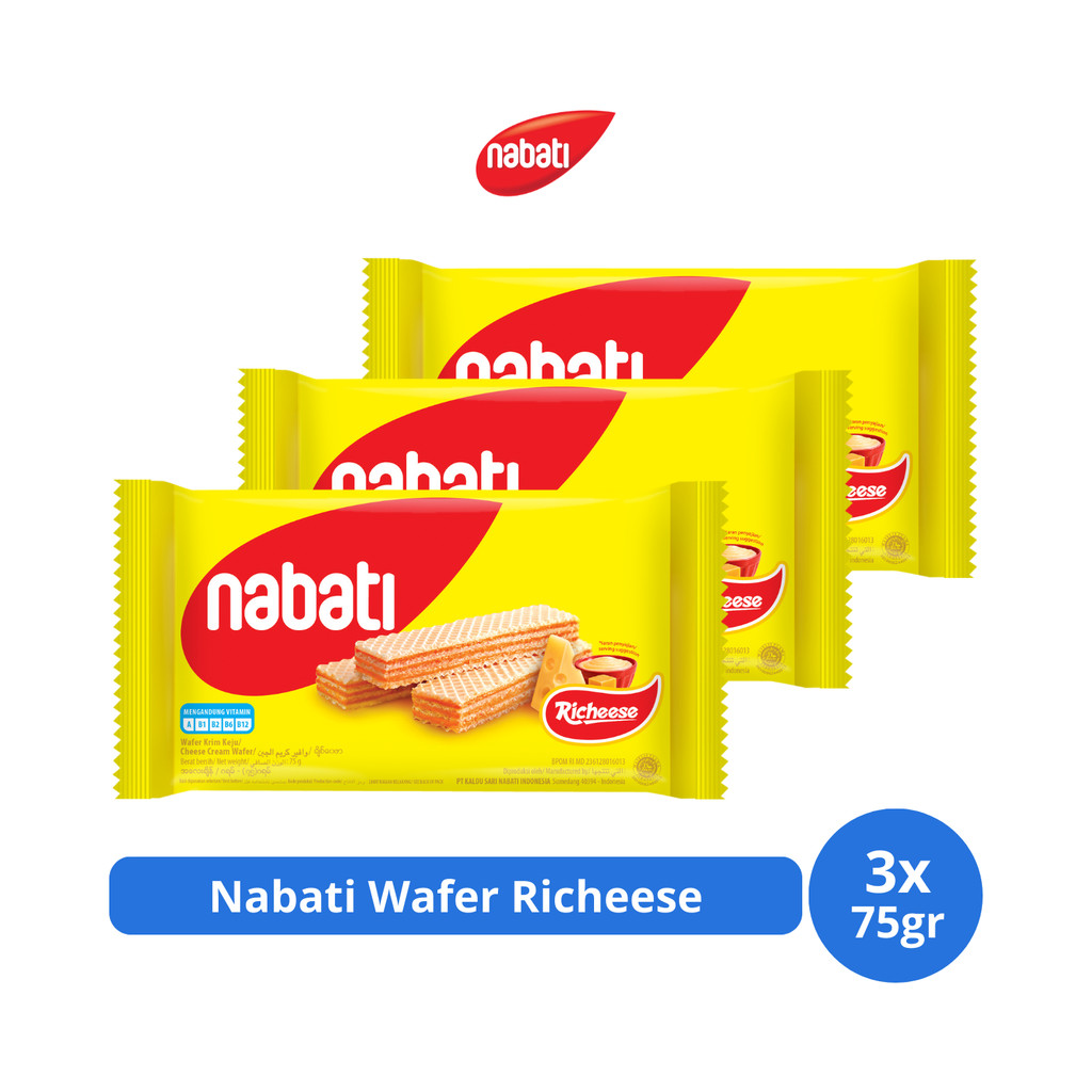 Kombinasi sempurna antara renyahnya wafer dan krim keju Richeese signature flavor Nabati yang berlimpah. Dibuat dengan bahan-bahan berkualitas tinggi, Nabati Richeese Wafer diperkaya dengan vitamin A, B1, B2, B6, dan B12. Setiap gigitan membuat kamu lebih bersemangat!