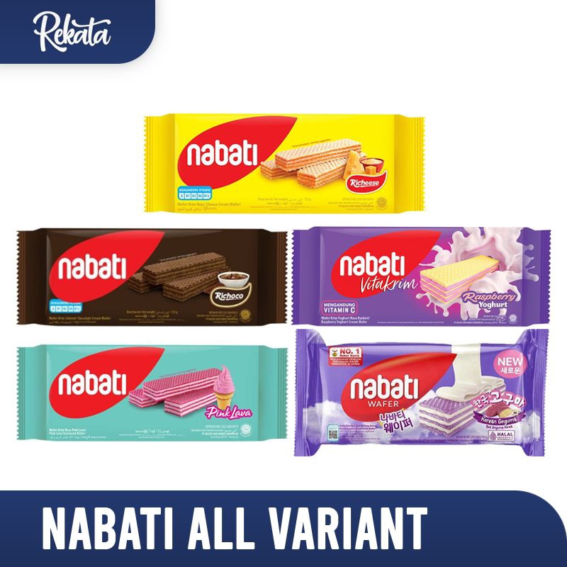 Nabati Wafer merupakan wafer krim yang terbuat dari kombinasi bahan-bahan pilihan berkualitas untuk menghasilkan wafer renyah dengan rasa yang istimewa. Nabati terdiri dari kombinasi wafer krispi dan krim premium di setiap lapisnya, memberikan Anda sensasi yang tak terlupakan. Tak hanya itu, wafer Nabati mengandung banyak vitamin yang dibutuhkan oleh tubuh, menjadikannya snack lezat yang kaya gizi.