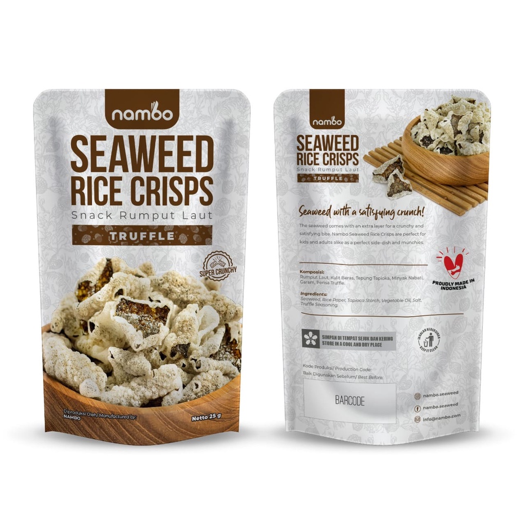 Snack rumput laut Nambo dibuat Homemade dengan bahan-bahan berkualitas dan diproduksi dengan higienis. Cocok dijadikan sebagai cemilan ataupun pendamping makanan kalian karena teksturnya yang renyah & gurih! ada berbagai macam varian rasa: