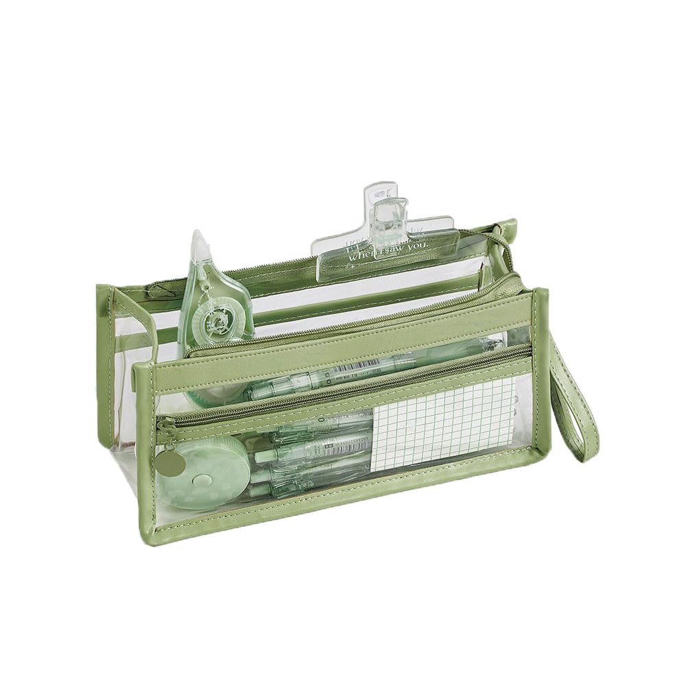 Nannlia Карандаш Большой Корейский для Мальчиков и Девочек Средней Старшей Школы и Колледжа Пенал, Прозрачный, Вместительный, Стильный, Стиль, Милый, Стильный, Многофункциональный, зелёный