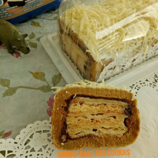 Cake lembut yang membalut pastry berlapis fla unik.