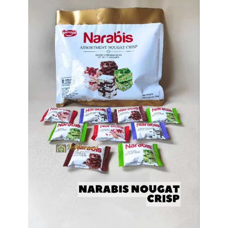 Nikmati sensasi renyah dan manis dari Naraya Narabis nougat crisp with cookies aneka rasa 200gr.