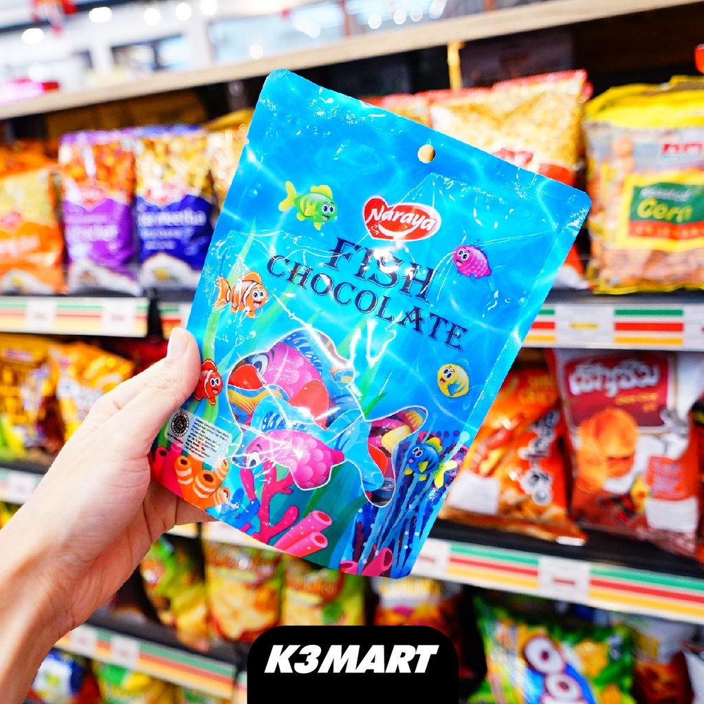 Naraya Fish Chocolate 90Gr merupakan cokelat compound hitam manis yang berbentuk ikan(choco fish shape) bentuknya lucu berwarna-warni.