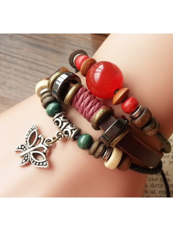 accessories,national wind multi-layer cowhide rope stars couple bracelet