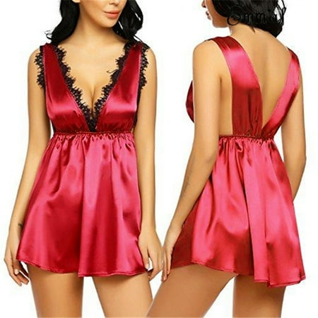 Yubatuo Plus Size Sleepwear for Women Sexy V Neck Nightgowns Floral Lace Chemise Babydoll Soft Nightwear Dress Lingerie Pink M