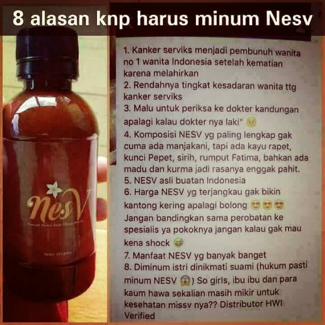 NesV merupakan minuman khusus wanita modern berbahan dasar madu yang berkasiat untuk merawat area kewanitaan
