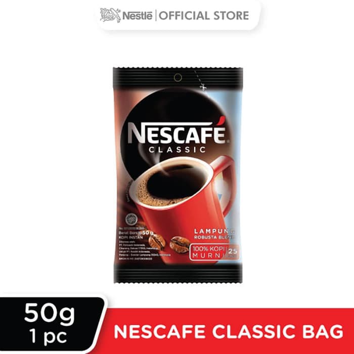 NESCAF CLASSIC merupakan 100% kopi murni Robusta yang diproduksi langsung dari kebun kopi petani di Lampung serta memiliki aroma nikmat dan rasa kopi yang kuat. Kopi persembahan dari Nescafe ini mampu menyajikan rasa yang nikmat dan mantap. Sangat cocok dinikmati sendiri mau pun bersama teman