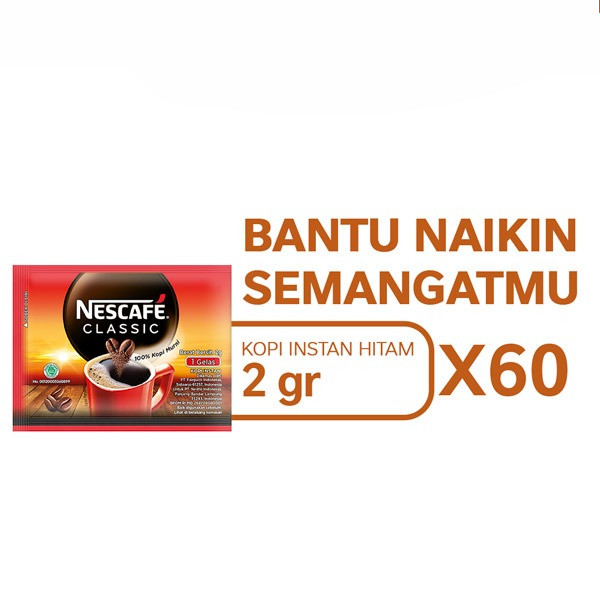 Nescafe Classic Kopi Hitam Robusta Instan 60 Sachet x 2 gr