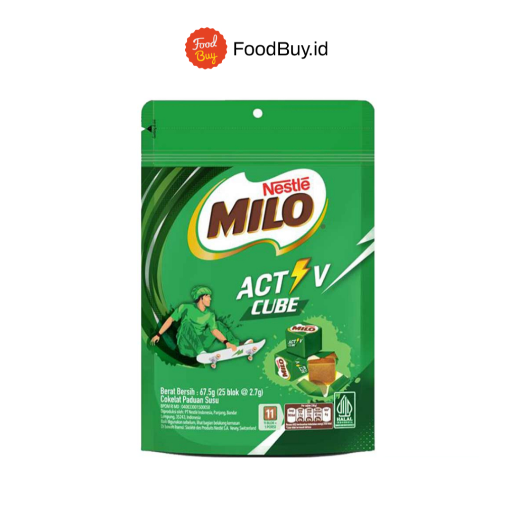 Baru, MILO Activ Cube! Minuman MILO kesukaanmu kini hadir dalam snack yang seru! Dengan gaya baru berbentuk dadu, rasakan gigitan MILO Activ Cube yang nikmat untuk mengisi tenaga mu di hari yang sibuk. Dibuat dari kebaikan Malt, Susu, dan Cokelat, MILO Activ Cube dikemas dalam re-sealable pouch, sehingga mudah untuk dibawa, dimakan, dan di-sharing bersama teman-teman!
