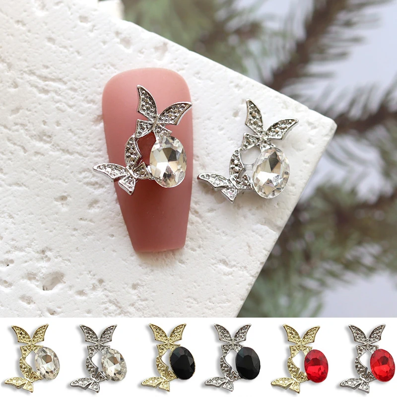 10PCS 3D Luxury Alloy Butterfly Nail Art Charms Oval Rhinestone Jewelry Accessories For Manicure Decor Nails Decoration Supplies