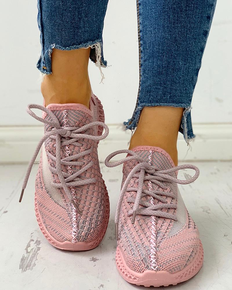 Net Surface Breathable Lace-Up Sneakers, Pink