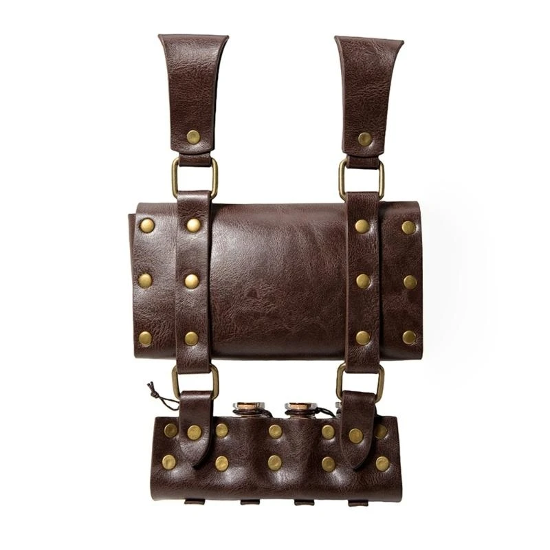 E8FB PU Кожаный мешочек средневекового ремня с 4 бутылками для косплея и ретро -модного поклонника