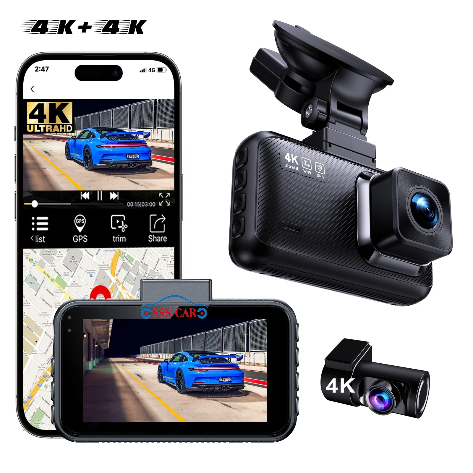 New 4K+4K Dual Lens Dash Camera Car Black Box DASHCAM Front and Rear 4k Dual Camera Built-in WIFI and GPS hd DUAL 4K DASH CAM
