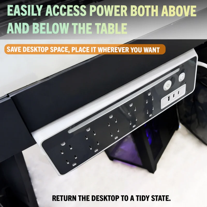 New American Standard Triangle Desktop Socket with LED Light Main Control Switch, Multi-Functional Power Strip with Overcurrent