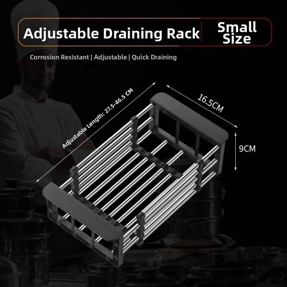 New Extend Kitchen Sink Drain Basket Portable Multi-functional Extender Basket for Vegetables Stainless Steel Sink Rack
