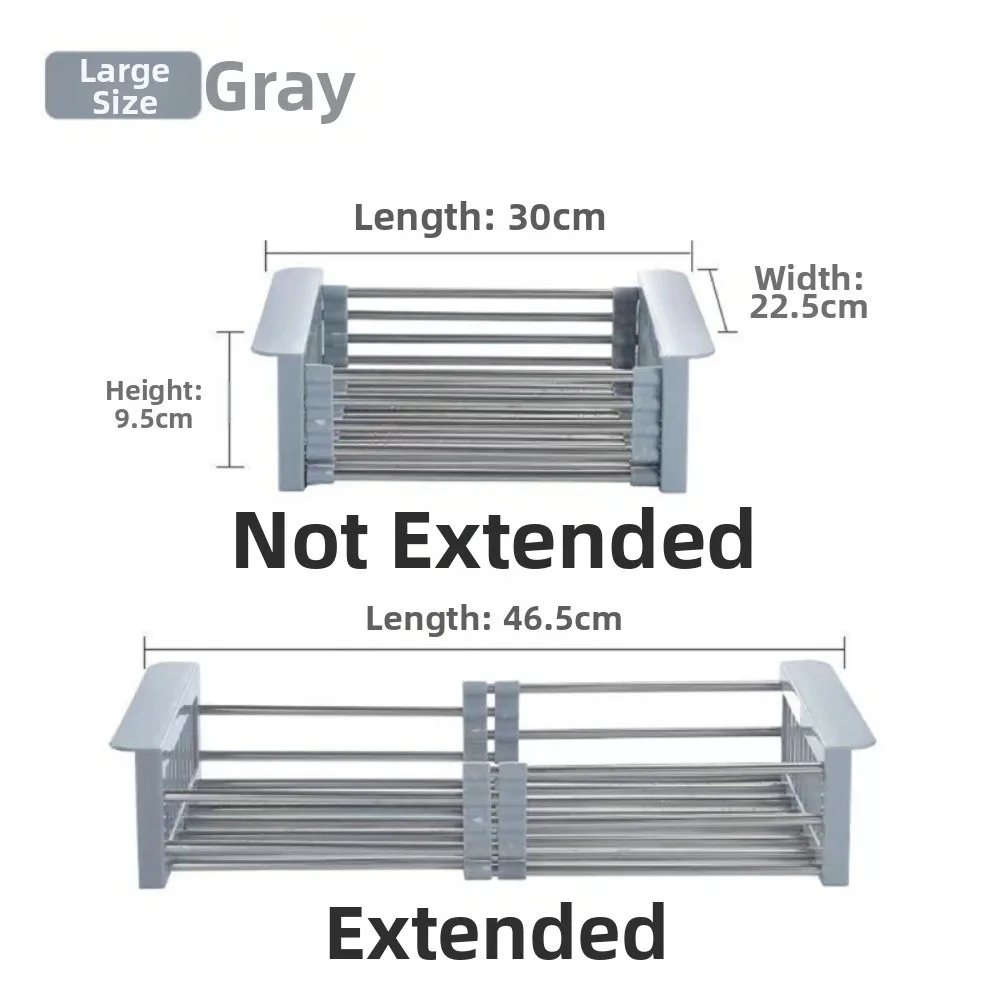 New Extend Kitchen Sink Drain Basket Stainless Steel Portable Sink Rack Multi-functional Extender Basket for Vegetables