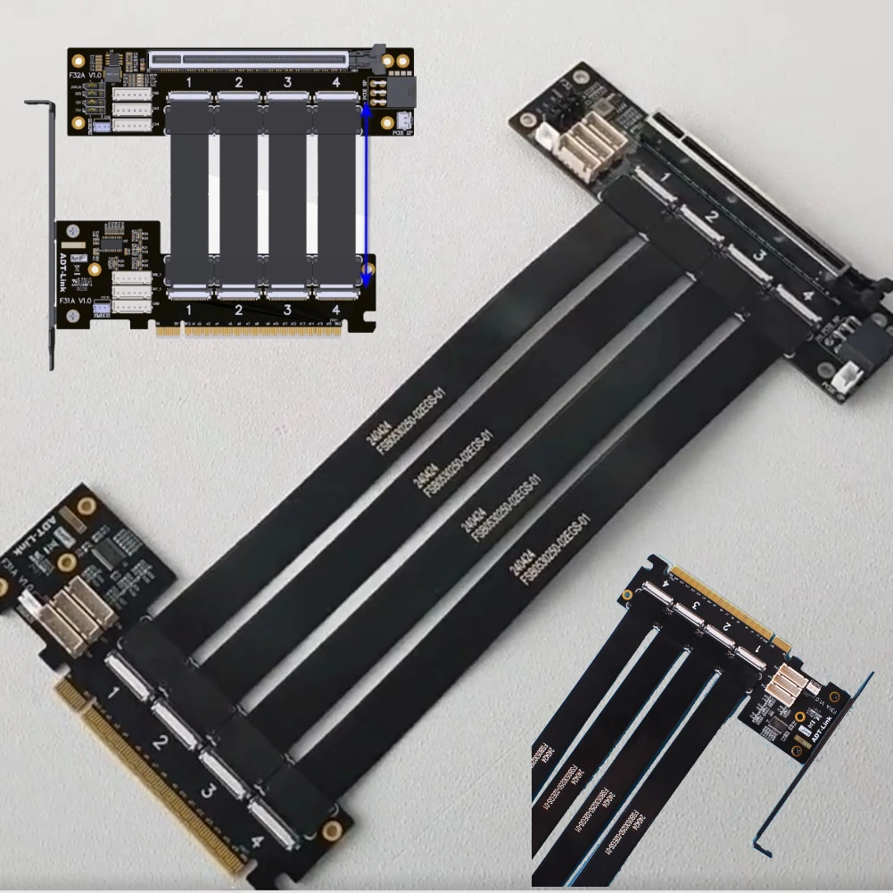 New PCIe 4.0 x16 FFC Graphics GPU Extension Cable 1 to 4 PCIE Riser Gen4 Split Card PCIe-Bifurcation 16X to X4 X8 Split Assembly