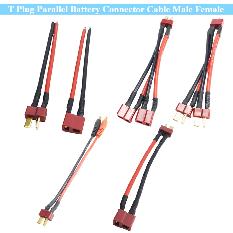 New T Plug Parallel Battery Connector Cable Male Female Dual Extension Y Splitter Silicone Wire for Rc DIY Quadcopte Wing Model